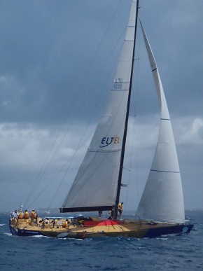 A Volvo 60 racer passing
